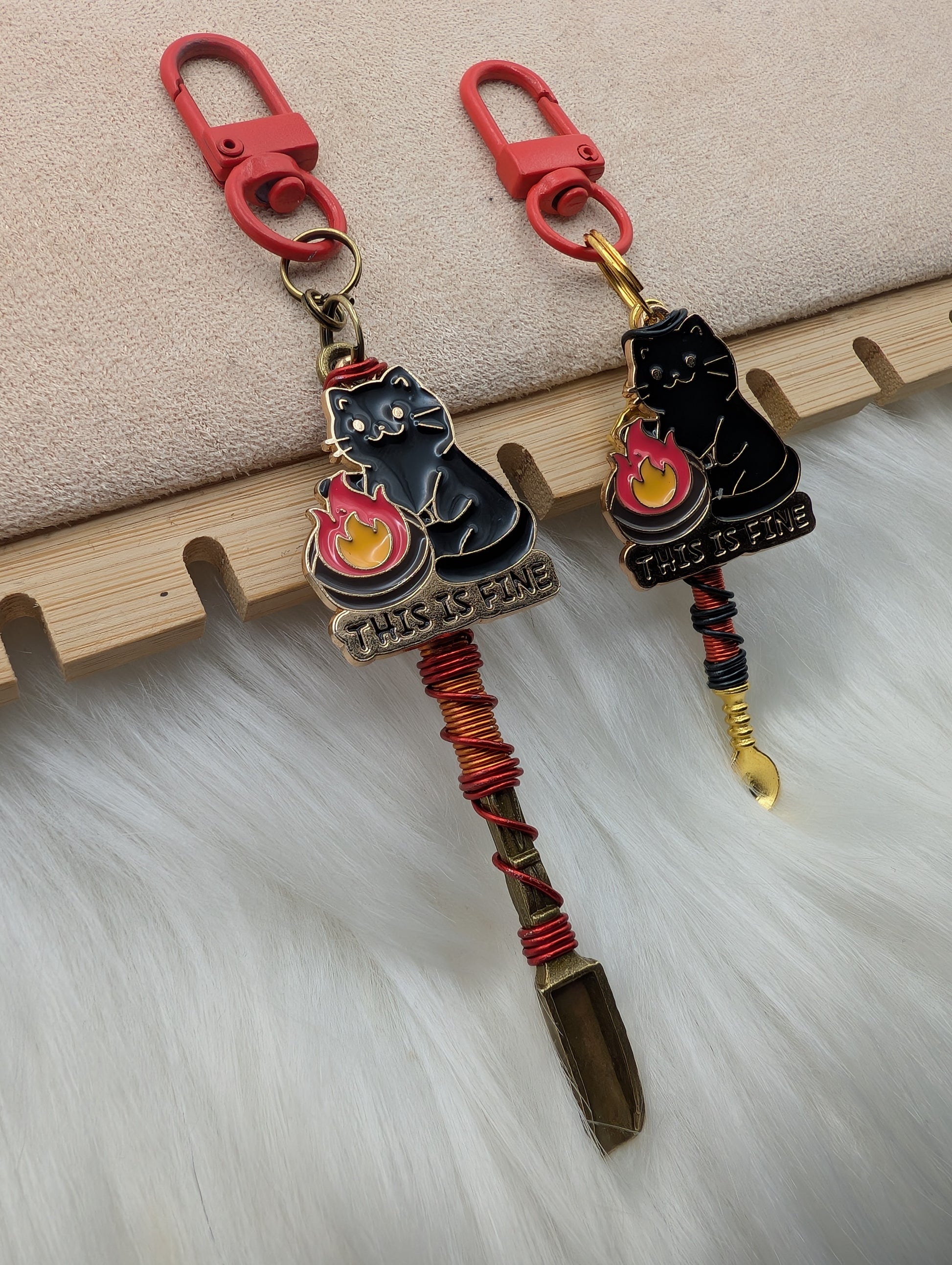 For those moments when everything is on fire but the vibe is still intact. This handmade mini spoon features a black cat sitting calmly in front of flames with the iconic “this is fine” text, capturing that perfectly relatable energy we all know a little too well.